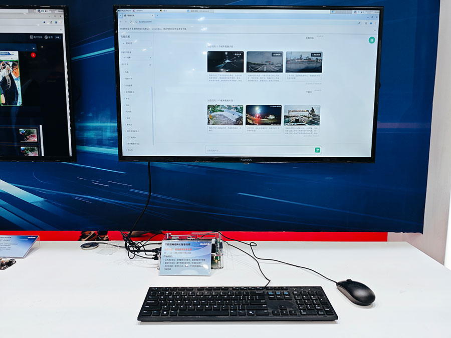端侧大模型展区,展出RK182X端侧AI算力协处理器及系列相关应用。RK182X具备大算力、高带宽特性,支持3B/7B大模型突破百token/s输出,可根据算力需求叠加一个或多个RK182X协处理器,为终端设备提供前所未有的算力灵活性,针对端侧AI复杂计算需求,特别是在多路视觉分析领域如智能安防、智能社区、智能校园等提供安全、可靠、低成本的AI部署选择。